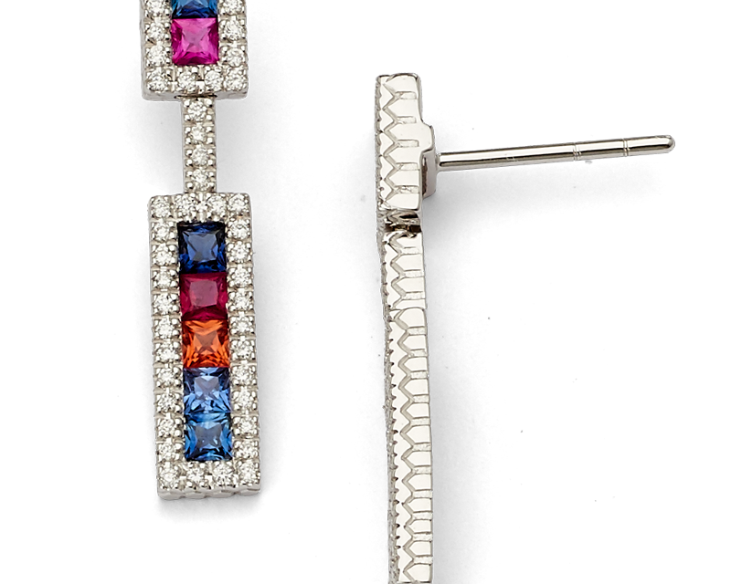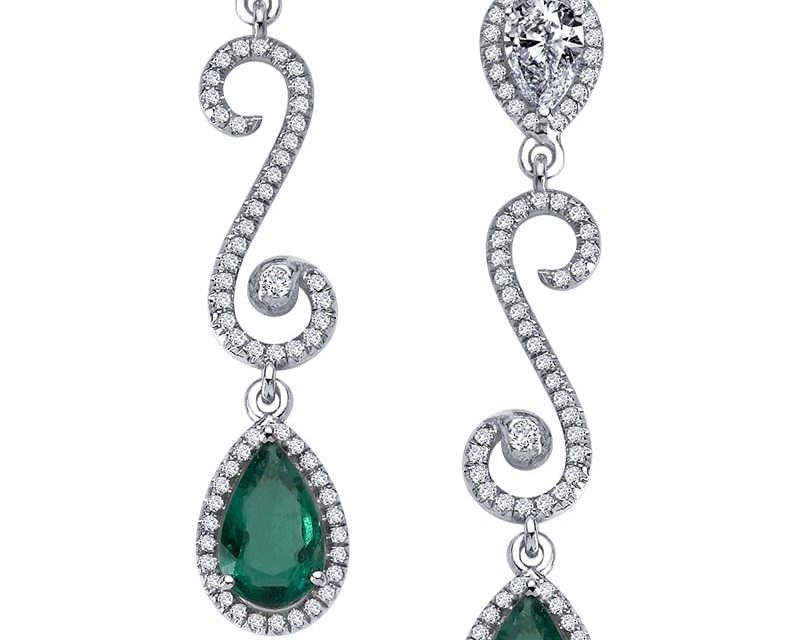 Fancy PS Emerald/Diamond Dangle Earrings With Halo